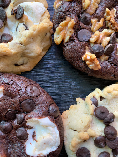 What’s your favorite cookie? We have a cookie for everyone. Whether you like walnut in your chocolate chip cookies, or would like to try a the trusted combination of marshmallows and graham crackers in your cookies, we give you the option. You can choose your favorite cookie flavor, and then add your favorite toppings from our increasing selection of unique and interesting toppings. You can make your cookie special and customized based on your favorite flavors.