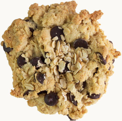 Our specialty cookie, a vanilla oat cookie with chocolate chips mixed in. It is perfectly chewy and highlights the flavors of vanilla and the nuttiness of the oats.