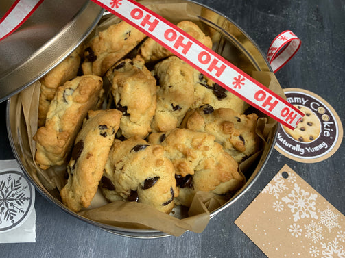 (The tin in the photo may or may not reflect the color or shape of the actual tin you will receive. We are changing our stock to rectangular tins as they fit the cookies better.)