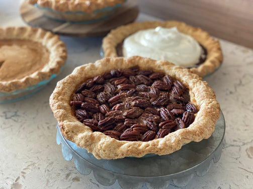 Pecan Pie: Made with a butter pie crust and filled with decadently toasted pecans (9 inch pie)